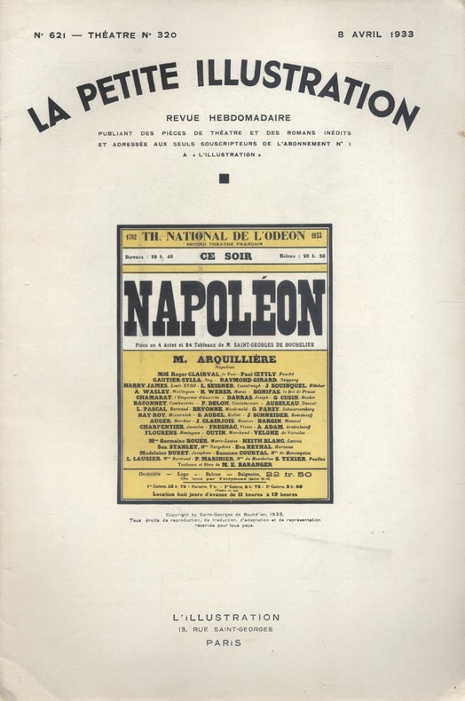 Périodique. Créée en février 1933 au Théâtre de l'Odéon. La Petite Illustration (Collection : Théâtre), 8 avril 1933.
