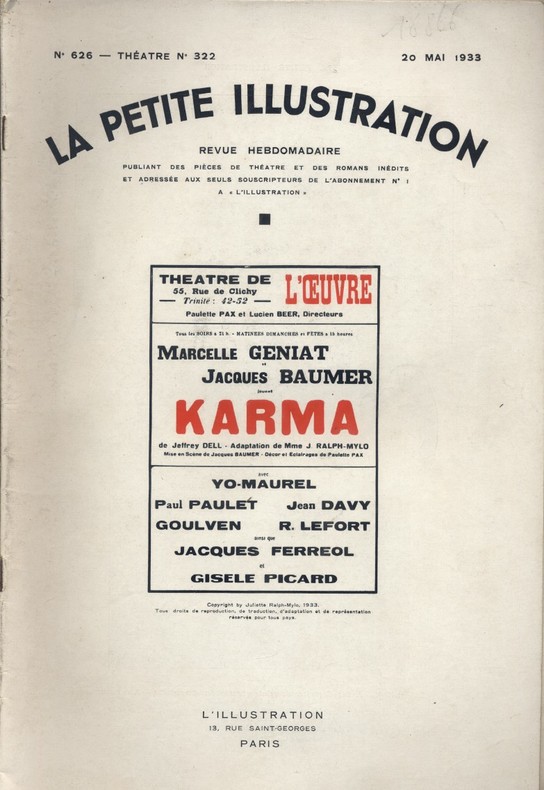 Périodique. Créée en mars 1933 au Théâtre de l'oeuvre. La Petite Illustration (Collection : Théâtre), 20 mai 1933.