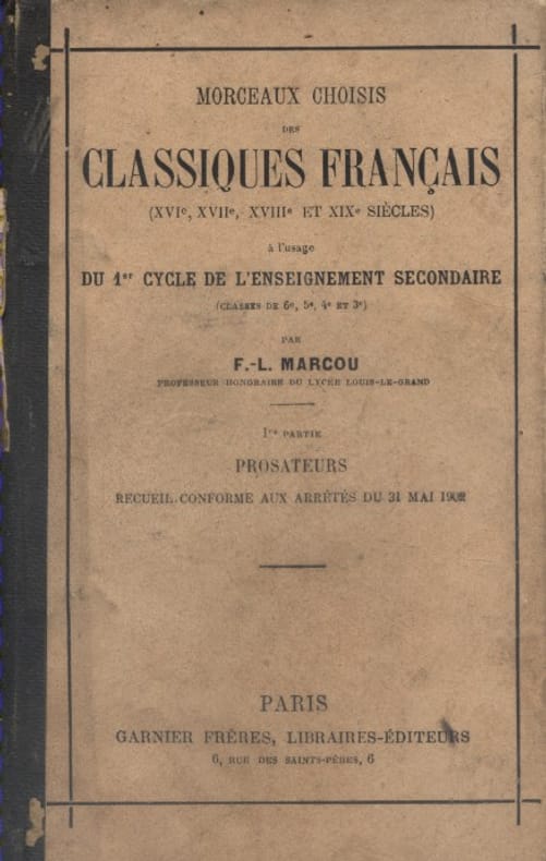 Livre. A l'usage du 1er cycle de l'enseignement secondaire. Editions Garnier Frères, Conforme aux arrêtés de 1902.