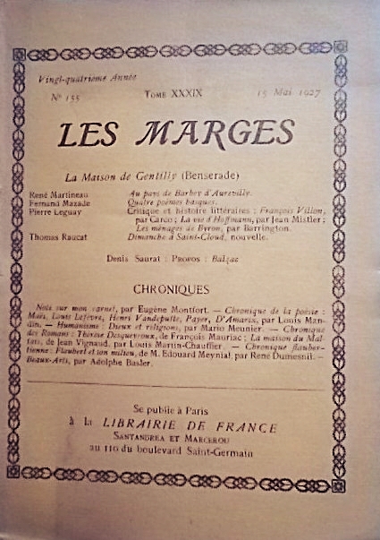 Périodique. Librairie de France (Collection : Tome XXXIX - N° 155), 15 mai 1927.