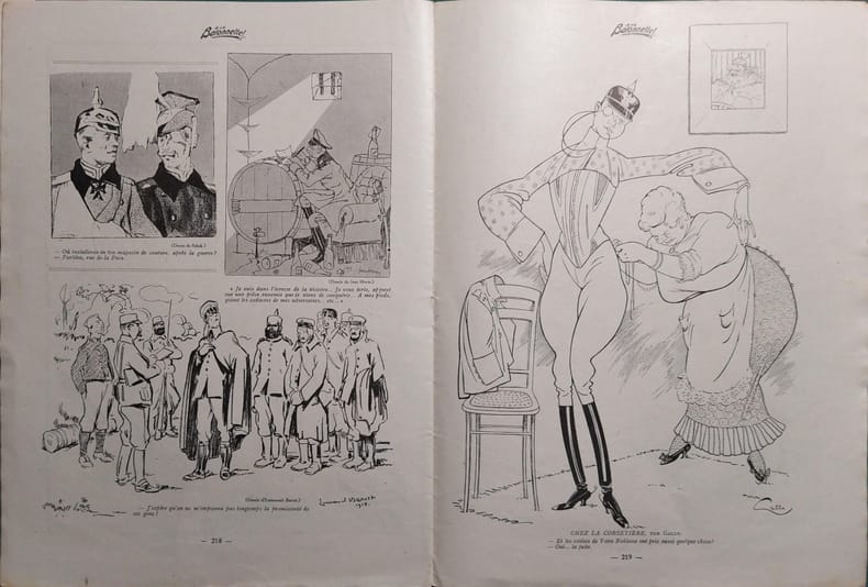 16 PAGES-23 CM X 30 CM-COUVERTURE COULEURS DE HUARD-"SUR LE FRONT ORIENTAL", PAR TOURAINE, NOIR ET BLANC PLEINE PAGE-"NOBLES CHEFS", 4 DESSINS DE HENRIOT SUR 1P, NOIR ET BLANC-"FACES BOCHES", PAR RICARDO FLORES, COULEURS PLEINE PAGE-DESSIN DE NOB, NOIR ET BLANC-DESSIN DE BARN, NOIR ET BLANC-"UN HEROS", PAR GOTTLOB, PLEINE PAGE NOIR ET BLANC-"L'ETAT-MAJOR", PAR R.DE LA NEZIERE, DOUBLE-PAGE COULEURS-DESSIN DE BARCET, NOIR ET BLANC-"CHEZ LA CORSETIERE", PAR GALLO, PLEINE PAGE NOIR ET BLANC-"LES JUNKERS", PAR HENRIOT, 8 DESSINS NOIR ET BLANC-"LE PASSAGE DE L'OFFICIER", PAR SOULIE, PLEINE PAGE COULEURS-"PILLAGE DE PHARMACIE", PAR JOBBE-DUVAL, PLEINE PAGE NOIR ET BLANC-"LA PART DU CHEF", PAR MARCO DE GASTYNE, PLEINE PAGE COULEURS