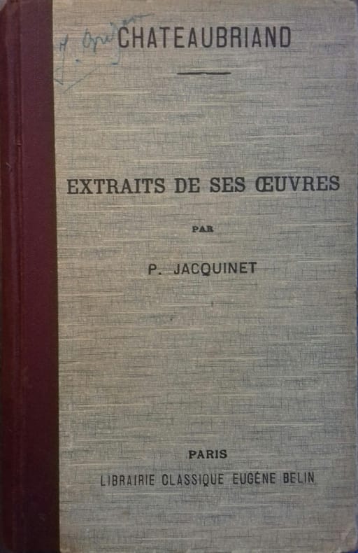 Livre. Avec une introduction, une étude biographique et littéraire et des notes littéraires, historiques par P. Jacquinet. Librairie classique Belin frères (Collection : Librairie classique), 1926.