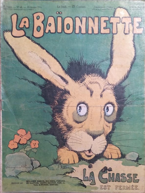 Périodique. Texte de Marcel Hervieu. Couverture illustrée par Benjamin Rabier. La Baïonnette, 1916.