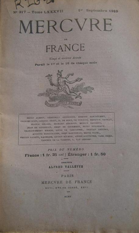 Mercure de France | Paris septembre-octobre 1910 | 15 x 23 cm