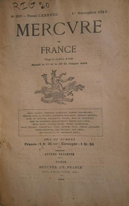 Périodique. Mercure de France, 1er décembre 1910.