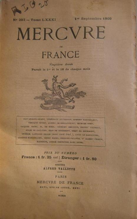 Mercure de France | Paris septembre 1909 | 15 x 23 cm
