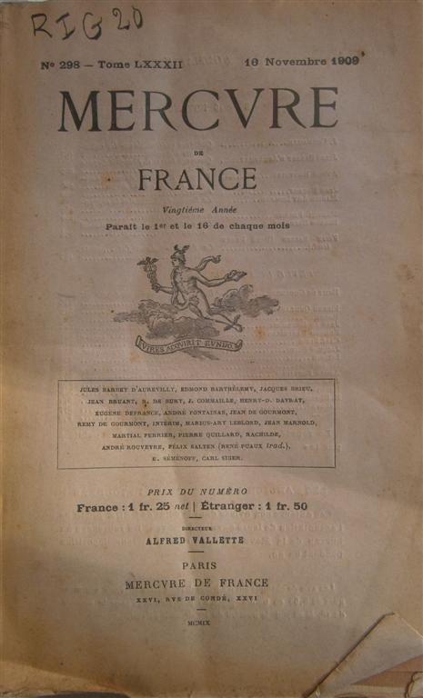 Périodique. Mercure de France, 16 novembre 1909.