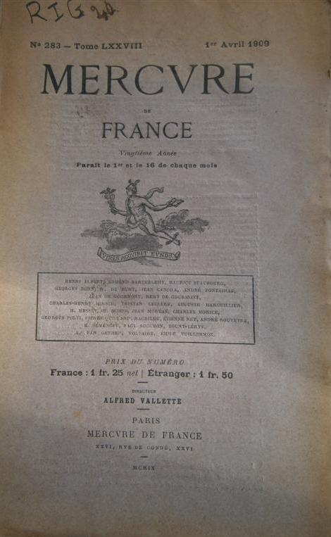 Mercure de France | Paris avril 1909 | 15 x 23 cm
