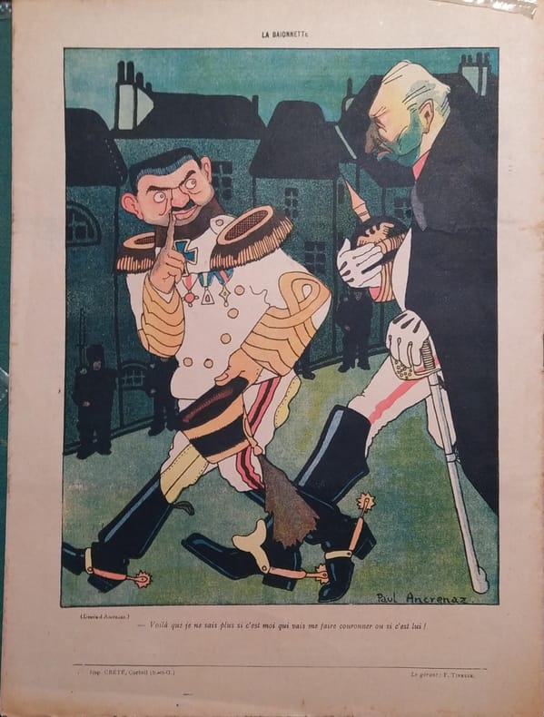 Périodique. Texte de Gabriel Timmory. Couverture illustrée par Cappiello. La Baïonnette, 1917.