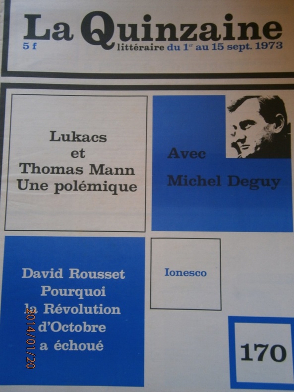 Périodique. La Quinzaine Littéraire, Septembre 1973.