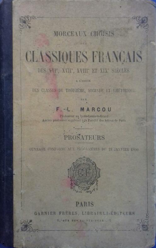 Livre. A l'usage des classes de troisième, seconde et première. Editions Garnier Frères, Début XXe. Vers 1900.