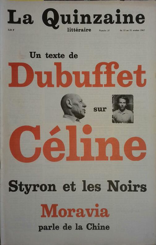 Au sommaire : Un texte de Dubuffet sur Céline, Styron et les Noirs, Moravia, par le de la Chine, etc.