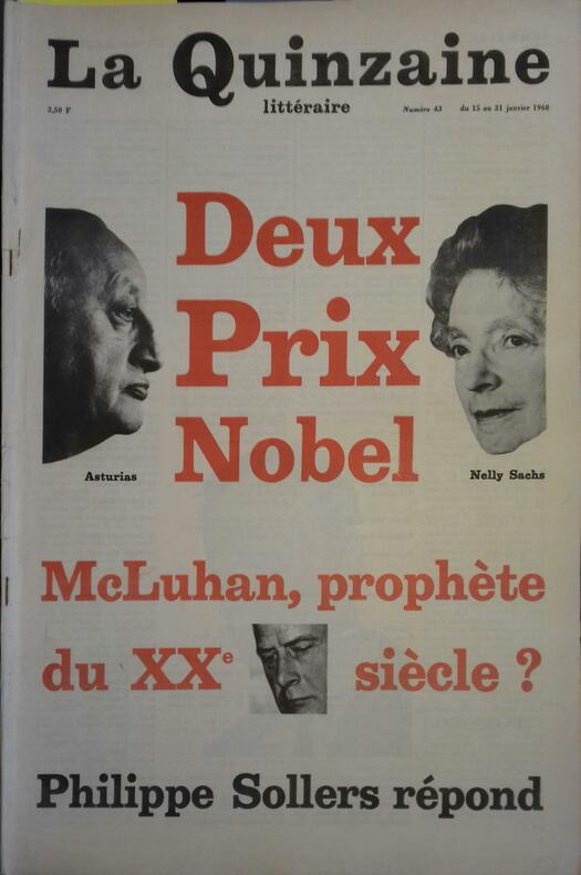 Au sommaire :Deux prix Nobel : Asturias et nelly Sachs, MacLuhan, prophète du XXème siècle ?, Philippe Sollers repond, etc.