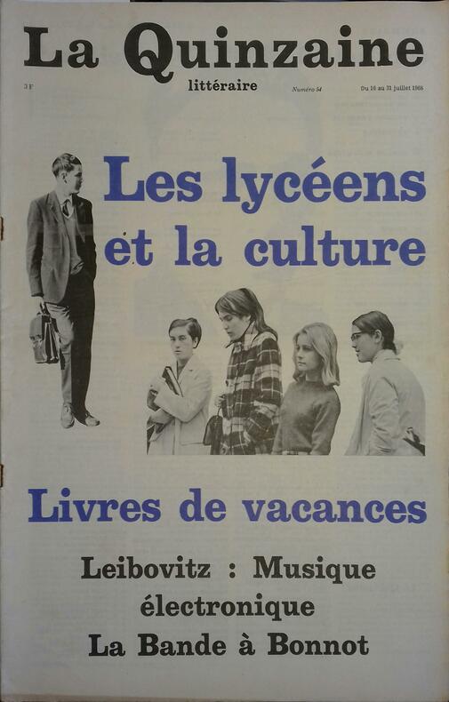 Périodique. La Quinzaine Littéraire, Juillet 1968.