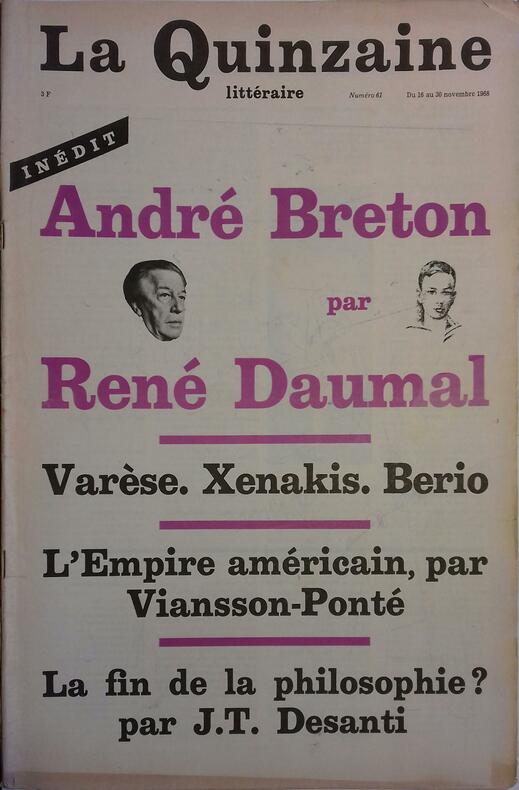 Périodique. La Quinzaine Littéraire, Novembre 1968.