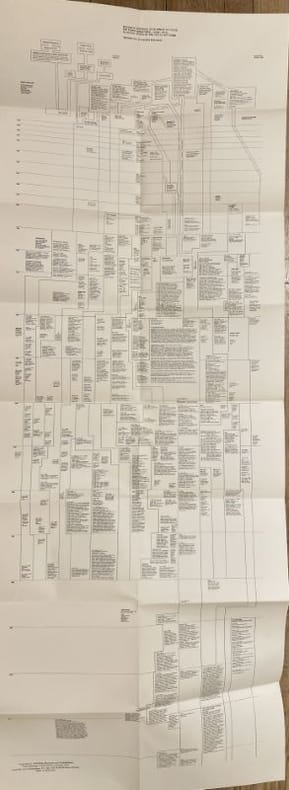 Stockholm Kalejdoskop 1981 Portefeuille de présentation 16x24cm contenant le diagramme 44.5x120cm ; photographie de G. Maciunas en couverture.. Texte de Mats B., "The Birth of Fluxus" en anglais et suédois. Neuf.(101038)