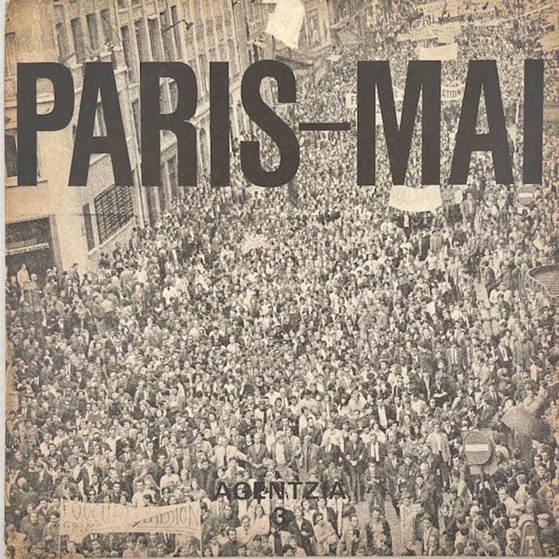 Numéro 3 de la revue Agentzia éditée par Jochen Gerz, Jean François Bory et Alain Hubschmid.Paris, mai 1968, 2 disques en carton ajouré imprimés l'un sur papier jaune titré "Réaction", l'autre sur papier orange titré "Révolution", chacun avec découpes de fenêtre, montés avec un rivet au centre sur un carton blanc imprimé de textes et de photos de mai 1968, contenu dans une pochette 300x300mm, au format et à l’aspect d’un disque vinyle, illustrée au verso d'une photographie d'une manifestation de mai 1968, au recto des extraits du journal "Le Monde".Défauts en couverture, petites réparations au dos, disque amovible en très bon état. Le fonds Paul Destribats n°880 (ce n°3 manque).(103108)