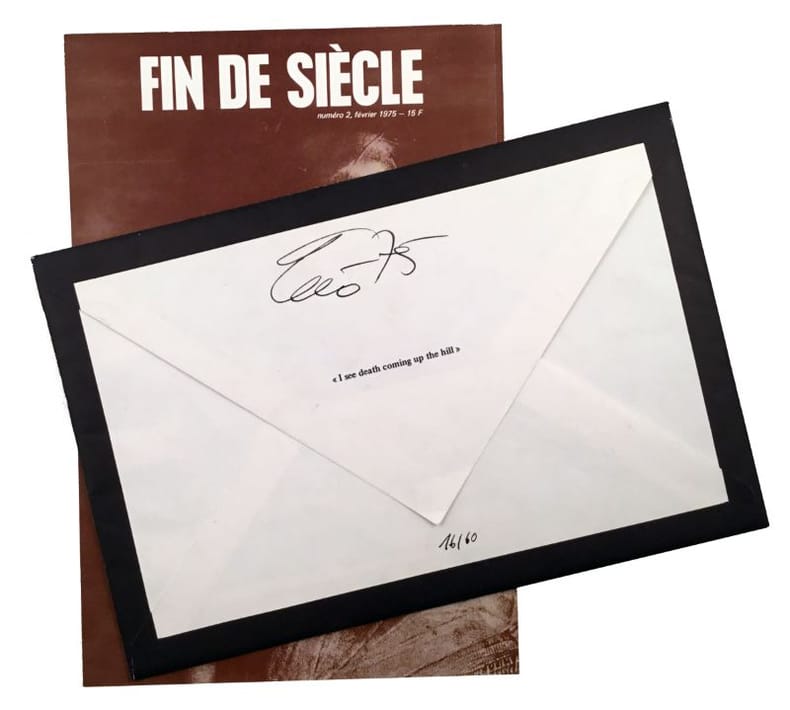 Paris, Editions Etrangères et Christian Bourgois, 270x176mm, 80p., broché.Exemplaire 16/60 numéroté au colophon et accompagné d’une enveloppe de Erro, signée et numérotée, contenant un tiré à part de « I see death coming up the hill », reproduit aux pages 60 à 66 de la revue et constitué de 9 feuilles. (103263)