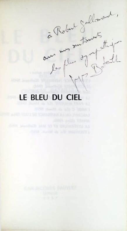 Paris, Jean Jacques Pauvert 1957, 188x112mm, 2ffnc, 215pp., 2ffnc, broché sous couverture avec motif de nuages.Edition originale, exemplaire 30/3000Envoi autographe signé à Robert Gallimard.(103360)