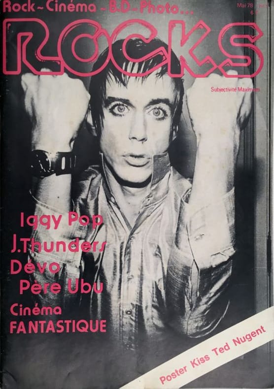 1978 Paris, mai 1978, 64p., agrafé sous couverture photographique. Directrice de la publication Eve Bellus, rédacteur en chef Frank Peeters. Revue de Rock, Cinéma, BD, Photo. Au sommaire Iggy Pop, J.Thunders, Dévo, Père Ubu,Cinéma fantastique, deux pages de Frank Margerin, nombreuses photographies, hit-parade, chronique de disque. Complet du poster central « Kiss Ted Nugent ». Déchirure réparée en dernière page. (103519)
