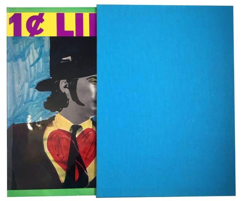 1¢ LIFE. Written by Walasse Ting. Edited by Sam Francis. Published by E.Kornfeld, Berne, E.W. Kornfeld, 1964. In-folio en feuilles, sous chemise cartonnée, jaquette et étui en toile bleue de l’éditeur. Jaquette par Machteld Appel. Couverture par Roy Lichtenstein et Pierre Alechinsky. Édition originale. - 62 LITHOGRAPHIES, la plupart en couleur, dont 29 sur doubles pages : Alan Davies (2 à double page), Alfred Jensen (3 dont 1 à double page), SAM FRANCIS (6 dont 1 à double page), WALASSE TING (6 dont 2 à double page), James Rosenquist (1 à double page), Pierre ALECHINSKY (5 dont 2 à double page), Kimber Smith (6), Alfred Leslie (2), Antonio Saura (1 à double page), Kiki O.K. (1 à double page ), Asger JORN (2 à double page), ROBERT INDIANA (2 dont 1 à double page), Jean-Paul Riopelle (2 à double page), Karel APPEL (5 dont 2 à double page), Tom Wesselmann (2 à double page), Bram Van Velde (1 à double page), Joan MITCHELL (1 à double page), Allan Kaprow (1 à double page), ANDY WARHOL (1 à double page), ROBERT RAUCHENBERG (1 à double page), K.R.H. Sonderborg (1 à double page), ROY LICHTENSTEIN (1 à double page), Öyvind Fahlström (1 à double page), Reinhoud (1 à double page), CLAES OLDENBURG (2 à double page), JIM DINE (1 à double page), MEL RAMOS (2 dont 1 à double page) et Enrico Baj (2), poèmes de Walasse TING, imprimés en noir et en couleurs, certains en calligrammes, accompagnés de 22 reproductions d’œuvres de Roy Lichtenstein, Pierre Alechinsky, Gustave Mignot, Walasse Ting ou Paul Loyer. - UN DES 2000 EXEMPLAIRES NUMÉROTÉS AVEC LA SIGNATURE DE WALASSE TING IMPRIMÉE. Très bel exemplaire, en parfait état, tel que paru et complet. Couverture par Roy Lichtenstein et Pierre Alechinsky, jaquette, étui d'origine. Bibliographie : Riva Castleman, A Century of Artists Books, New York, The Museum of Modern Art, 1994, pp. 208-209. - A. Coron, 50 livres illustrés depuis 1947, 1988, nº 32. Notes bibliographiques et historiques: Cette anthologie graphique et poétique a été mise en œuvre par l'éditeur bernois E.W. Kornfeld qui devait en assurer la diffusion et Sam Francis, qui en était l'editeur avec l'auteur Walasse Ting ; ils en partagèrent les frais. Le livre lui-même fut réalisé à Paris; les lithographies furent tirées chez Maurice Beaudet et la typographie par Georges Girard. Antoine Coron souligne le caractère de global book de “1¢ Life”, ses deux pôles étant New York, centre du pop art américain - une douzaine d'artistes se rattachent à ce mouvement - et Paris, mais un Paris peuplé d'Américains installés ou de passage, de Belges, de Néerlandais, de Danois... Dix nationalités sont représentées dans le livre où les seuls Français sont ses artisans imprimeurs. “1¢ Life” apparut comme le livre d'une génération de peintres américains et européens, dont certains (Walasse Ting et Sam Francis parmi les Américains) avaient vécu et s'étaient connus à Paris durant les années 50. [...] Livre de peintres par excellence, étonnant par la profusion de ses contributions graphiques, l'invention colorée de sa typographie, “1¢ Life”, comme “Poésie de mots inconnus”, fait tomber toute réticence face aux livres collectifs. Pourtant, à la différence du livre d’Iliazd, ce n’est pas la fermeté de sa construction qui en assure l’unité, mais la surprise que ménage le renouvellement constant de sa mise en pages (Antoine Coron). -- SHORT ENGLISH DESCRIPTION: A superb copy of Ting's collaborative masterpiece. The complete portfolio, comprising 62 lithographs, 59 printed in colors, 1964, from the regular edition is 2000, on regular wove paper, published by E.W. Kornfeld, Bern, Switzerland, contained in the original illustrated hard-cover and blue cloth-covered slipcase. - “1¢ LIFE” includes 62 works by the following artists: Pierre Alechinsky, Karel Appel, Enrico Baj, Alan Davie, Jim Dine, Oyvind Fahlstrom, Sam Francis, Robert Indiana, Alfred Jensen, Asger Jorn, Allan Kaprow, Kiki O.K., Alfred Leslie, Roy Lichtenstein, Joan Mitchell, Claes Oldenburg, Mel Ramos, Robert Rauschenberg, Reinhoud, Jean-Paul Riopelle, James Rosenquist, Antonio Saura, Kimber Smith, K.R.H. Sonderborg, Walasse Ting, Bram van Velde, Andy Warhol, Tom Wesselmann. - 62 LITHOGRAPHS, most in colour, including 29 on double pages: Alan Davies (2 double pages), Alfred Jensen (3 including 1 double page), SAM FRANCIS (6 including 1 double page), WALASSE TING (6 including 2 double-page), James Rosenquist (1 double-page), Pierre Alechinsky (5 including 2 double-page), Kimber Smith (6), Alfred Leslie (2), Antonio Saura (1 double-page), Kiki O.K. ( 1 double-page), Asger Jorn (2 double-page), ROBERT INDIANA (2 including 1 double-page), Jean-Paul Riopelle (2 double-page), Karel Appel (5 including 2 double-page), Tom Wesselmann (2 double-page), Bram Van Velde (1 double-page), Joan Mitchell (1 double-page), Allan Kaprow (1 double-page), ANDY WARHOL (1 double-page), ROBERT RAUCHENBERG (1 double-page page), K.R.H. Sonderborg (1 double page), ROY LICHTENSTEIN (1 double page), Öyvind Fahlström (1 double page), Reinhoud (1 double page), CLAES OLDENBURG (2 double page), JIM DINE (1 double page ), MEL RAMOS (2 including 1 double-page) and Enrico Baj (2), poems by Walasse Ting, printed in black and in color, some in calligrams, accompanied by 22 reproductions of works by Roy Lichtenstein, Pierre Alechinsky, Gustave Mignot, Walasse Ting or Paul Loyer. - ONE OF THE 2000 COPIES WITH WALASSE TING SIGNATURE PRINTED ON THE COLOPHON. Very beautiful, perfect copy, as published and complete. Cover by Roy Lichtenstein and Pierre Alechinsky, dust jacket, original slipcase. Literature: Riva Castleman, A Century of Artists Books, New York, The Museum of Modern Art, 1994, pp. 208-209. - A. Coron, 50 livres illustrés depuis 1947, 1988, nº 32.
