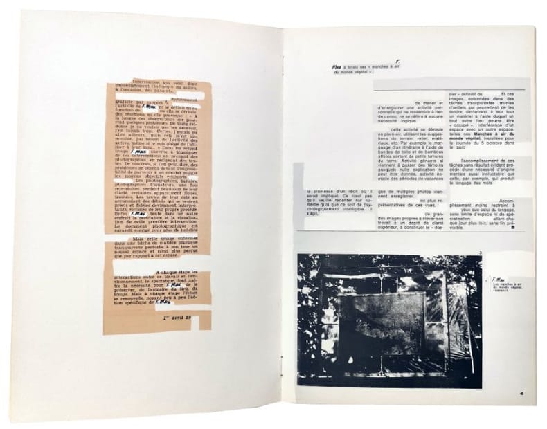 Hamburg, Edition Hossmann, 1972, 284x190mm, 16 pages non paginées, agrafé sous couverture titrée. Livre d'artiste illustré de photographies, collages et textes de l'auteur. Tirage de 500 exemplaires numérotés, état neuf. Moeglin-Delcroix 2011, p. 320. (105307)