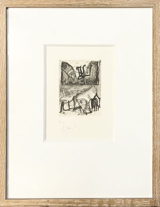 1990 1990, 11,8x8,7 cm, eau-forte, pointe sèche. Tirage à 14 exemplaires signés et numérotés. Encadrement d’origine. Bibliographie : gravures 1989-1996 page 31; Kunstverein Hannover 1992. (105379)