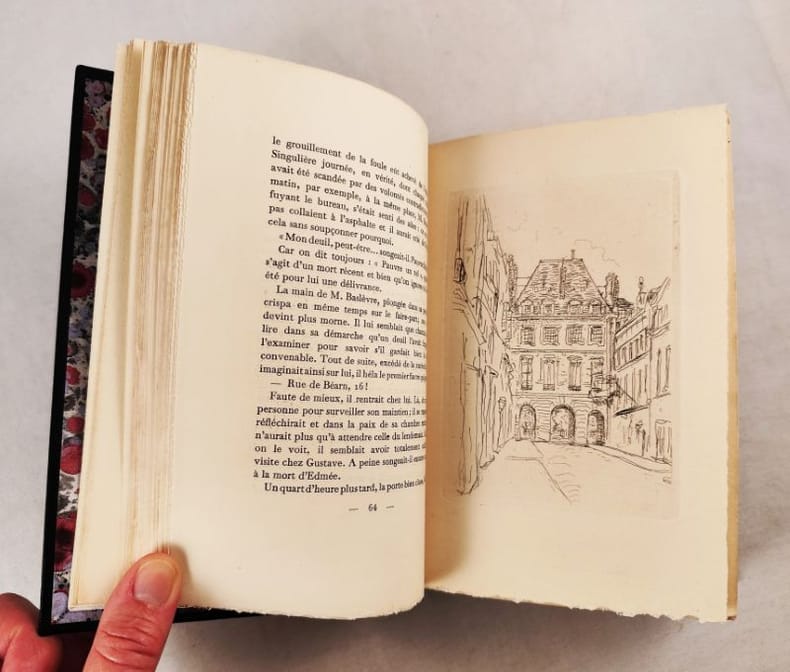 1924 Paris,Crès 1928, 200x140mm, 362 pp., plein chagrin noir, couverture et dos conservés, étui.Illustrations de Lucien Mainssieux. Un des 1000 exemplaires (n°336) sur papier Vélin du Marais d'un tirage de 1030.
