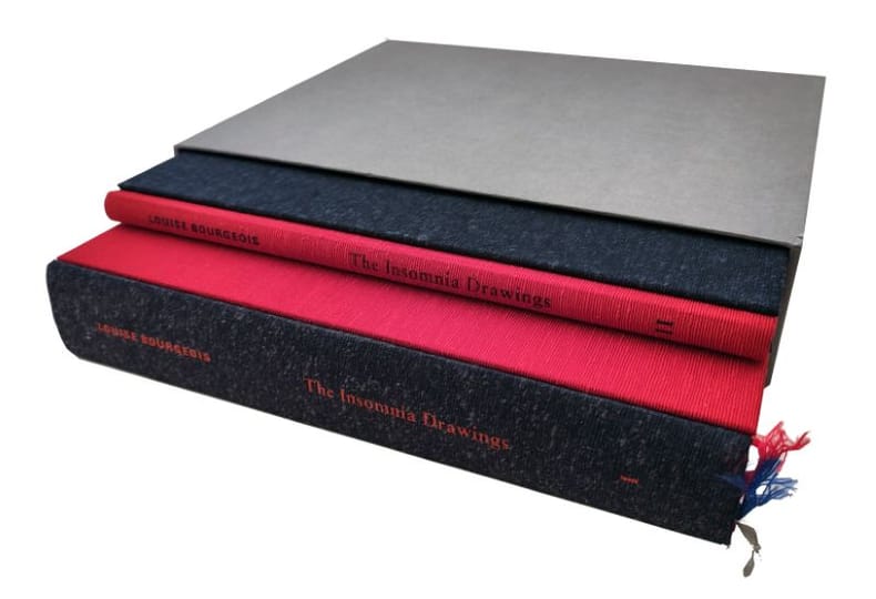 Edition en fac-similé des dessins en couleurs composés par Louise Bourgeois entre novembre 1994 et juin 1995. The Insomnia Drawings de Louise Bourgeois est une sélection de 220 dessins créés pendant ses nuits blanches entre 1994 et 1995. Ces dessins, accompagnés de poèmes, aphorismes et notes, révèlent l'esprit de l'artiste, explorant ses pensées, souvenirs et motifs récurrents. Ce travail, à la fois beau et perturbant, est un miroir de la vie et de l'œuvre de Bourgeois. Le livre, publié en deux volumes, présente d'abord des fac-similés des dessins, puis offre des analyses biographiques et culturelles sur ces œuvres. Il constitue un voyage unique à travers la psyché de l'artiste.Un des 120 exemplaires de tête (1 à 100 + 20 AP I à XX) numéroté (61/100) accompagné d’une gravure monogrammée et numérotée.Etat neuf. (2816.5).(105468)