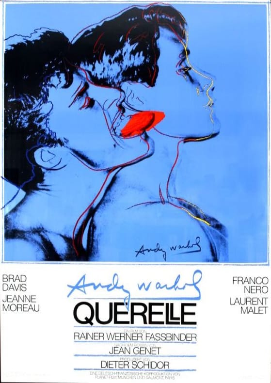 Affiche originale fond bleu 1020x700mm, imprimées en offset en couleurs.Une des trois versions avec l'image spécialement créée en 1982 pour le film éponyme de Rainer Fassbinder d’après la nouvelle de Jean Genet.Feldman-Schellmann, Andy Warhol Prints, Catalogue raisonné 1962-1987, p.239.