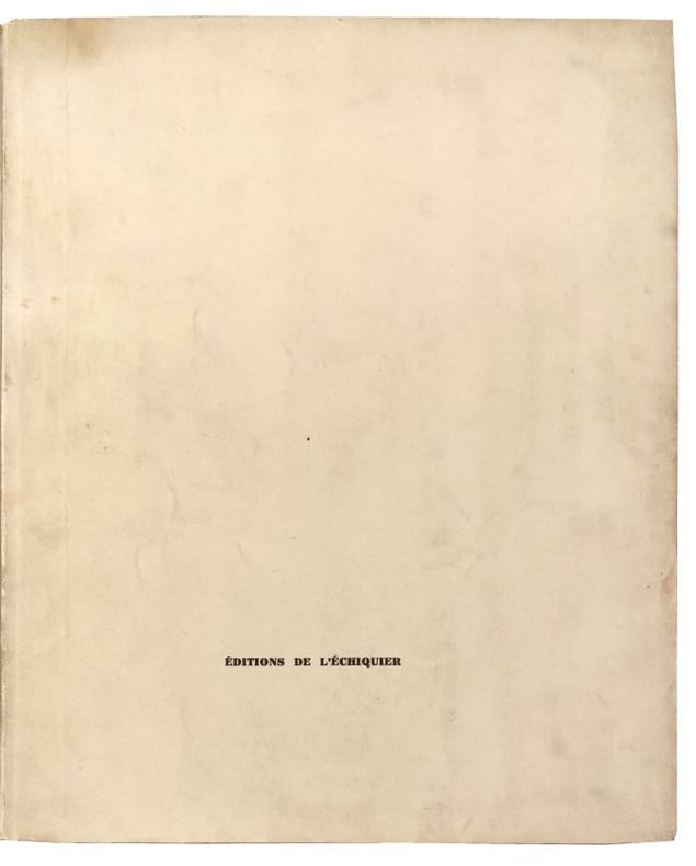 Cette étude, consacré à des problèmes de fin de parties, fut écrite par Duchamp après cinq années où il avait régulièrement participé à des tournois internationaux. Des extraits et critiques figurent dans "Le surréalisme au service de la Révolution" n°2 et "Orbes" série II n°2. La typographie élégante de la couverture fut obtenue en faisant passer les rayons solaires à travers un écran découpé.Tirage total de 1000 exemplaires . Exemplaire de tête numéroté 6/30, signé par Marcel Duchamp et Vitaly Halberstadt.(105527)Schwarz n°430 (292); Lebel 165; Naumann 4.17.(2807.26)
