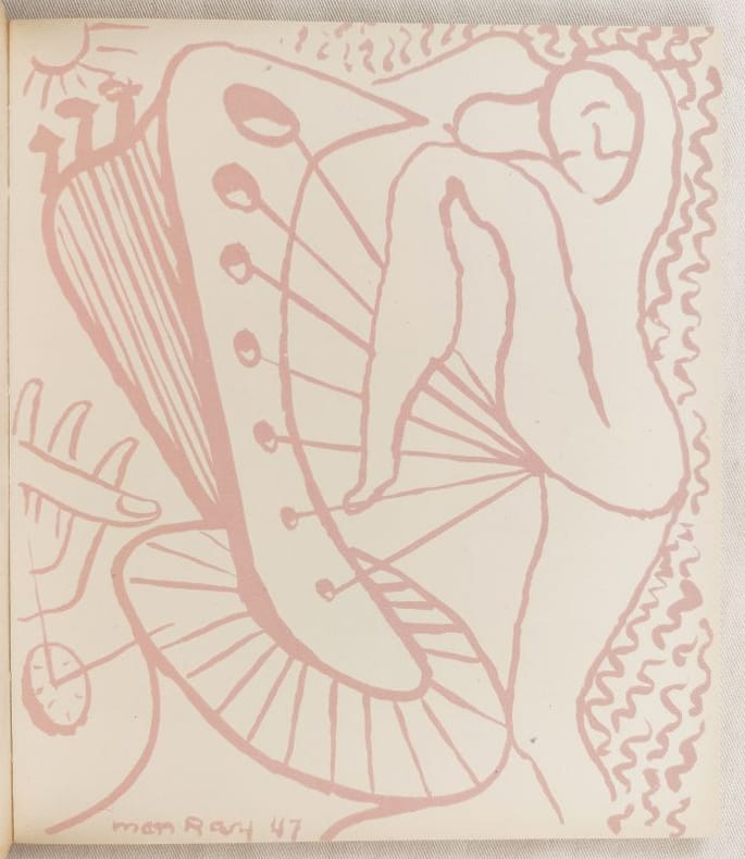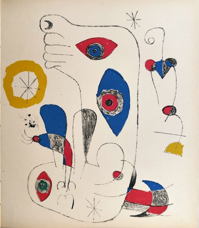 L’illustration comprend vingt-quatre hors-textes originaux, soit 5 lithographies en couleurs, de Victor Brauner, Max Ernst, Jacques. Hérold, Wifredo Lam et Joan Miro; 5 eaux-fortes, dont une en couleurs de Hans Bellmer, Marcel Jean, Maria, Vues Tanguy et Dorothée Tanning, 2 bois de Jean Arp et 12 lithographies en noire de Serge Brignoni, Alexandre Calder, Bruno Capacci, Elisabeth van Damme, Julio de Diego, Enrico Donati, David Hare, Jacqueline Lamba, Matta, Kay Sage, Yves Tanguy, Toyen. L'impression des eaux-fortes a été faite par Lacourière, celle des bois, lithographies en couleurs et lithographies en noir par Mourlot frères. L'édition contient en outre 44 planches d'illustrations hors-texte et 20 dessins. Tous les cuivres, bois et pierres ont été rayés. Exemplaire n°969.Cet exemplaire contient en outre, comme certains, une lithographie originale en couleurs de Man Ray non signalée au colophon.Schwarz, , 521, 522, 523. From Manet to Hockney 115. Castleman, A Century of Artist's Books 232. (2807.17)(105538) Bon