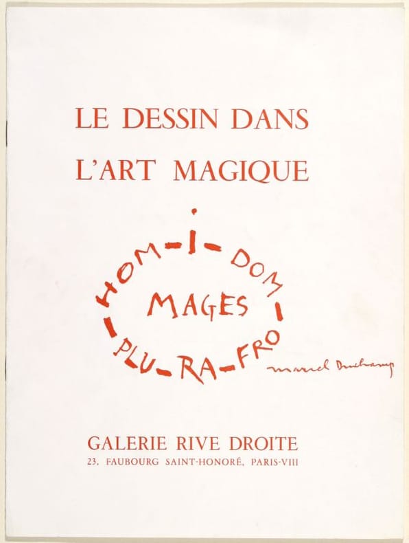 Paris, Galerie Rive Droite, 21/10-1/11 1958, 320x250mm 4pp, broché sous couverture originale conçue par Marcel Duchamp.Préface d'Henri Michaux et un poème d'André Verdet. Très bon état.Schwarz 561.(105542)