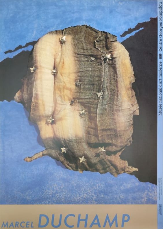 Paris, Musée National d'Art Moderne / Centre Pompidou, 1988, affiche 700x500mm, impression offset par Imprimerie La Fayette Paris, conception graphique de Ch. Beneyton. L'œuvre représentée est "Allégorie de Genre : George Washington "créée par Duchamp à New York en 1943 pour une couverture de la revue Vogue, qui la refusa, et fut finalement publiée dans le n°4 de VVV. Etat neuf. (105581)