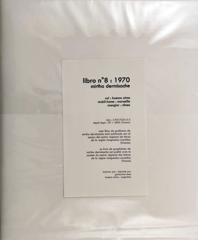 Edité par Editions Xul, Buenos Aires, Argentine ; Mobil-Home, Marseille; Manglar, Nîmes, France, 2003. First edition., 2010Libro n°8 - 1970/2003