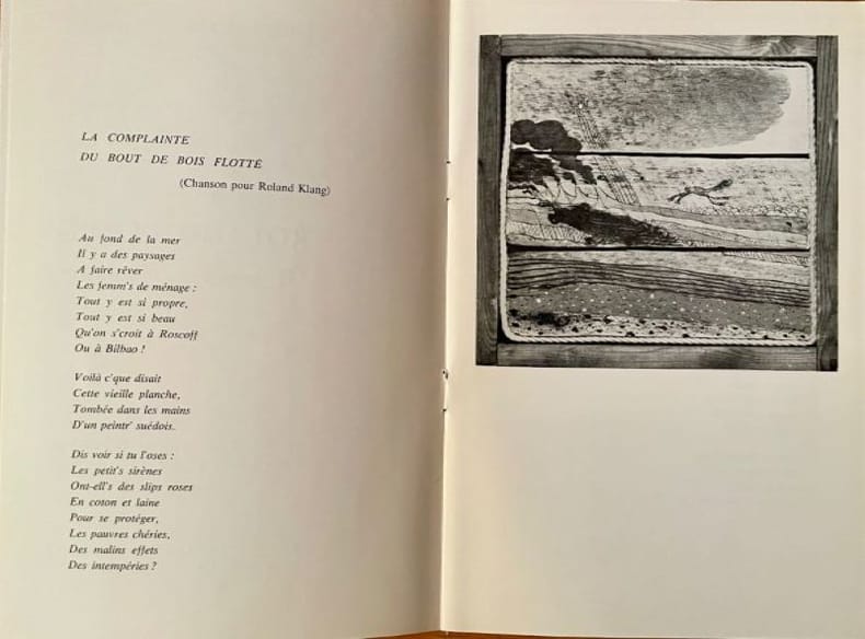 Poème de José Pierre "La complainte du bout de bois flotté".Texte de Michel Serpin, portrait de l'auteur et biographie, deux reproductions de tableaux. Très bon