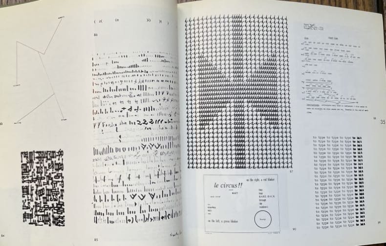 Catalogue édité à l'occasion d'une exposition de poésie concrète et visuelle en 1979 à Fiuggi, Italie. Présentant plusieurs essais, dont ceux d'Adriano Spatola et Giulia Niccolai, et abondamment illustré de plus de 140 exemples de poésie concrète et visuelle du monde entier, y compris les contributions de Mirella Bentivoglio, C. A. Sitta, Aaron Marcus, Rolf Staeck, José A. Caceres, Steve McCaffery, Max Bense, bpNichol, John Furnival, Ian Hamilton Finlay, Ben (Bern) Porter, Hans Clavin, Timm Ulrichs, Irma Blank, Mary Ellen Solt, Julien Blaine, Ugo Carrega, Paul de Vree, Giuliano Della Casa, Arrigo Lora-Totino, Maurizio Nannucci, Ladislav Novak, Décio Pignatari, Jirí Valoch et Eugenio Miccini, entre autres. Très bon état malgré un dos légèrement bruni. Très bon
