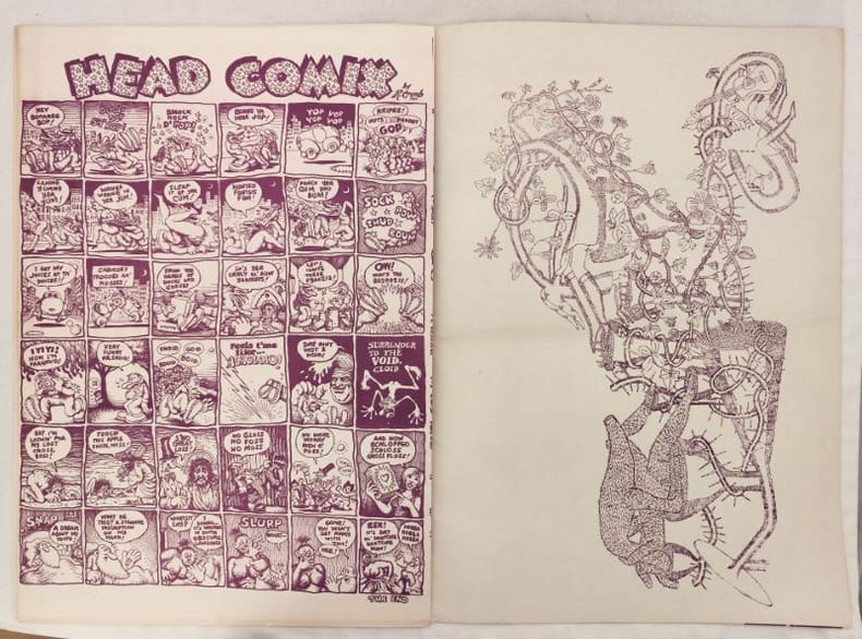 Deuxième numéro de ce magazine underground , contenant la toute première apparition d’une bande dessinée de Robert Crumb, initialement tirée de ses carnets de croquis sans intention de publication.Deuxième apparition de Mr. Natural et première d'Angelfood McSpade et du Snoid.Très bon état, pli central à peine marqué minimes défauts en couverture. Très bon