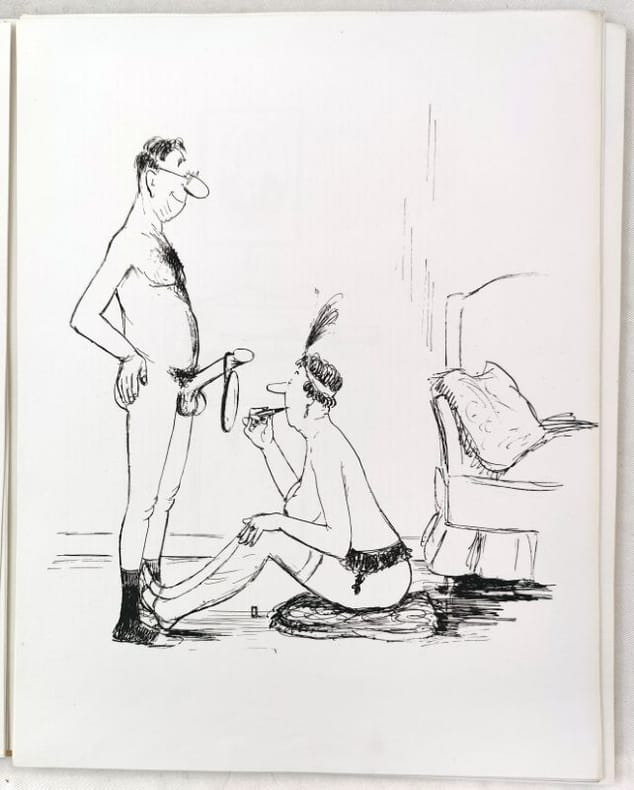 Recueil de 40 planches de caricatures érotiques hors-texte en noir de Roger TESTU. Tirage unique à 400 exemplaires numérotés entièrement souscrits par "Les Amis des Belles Manières".