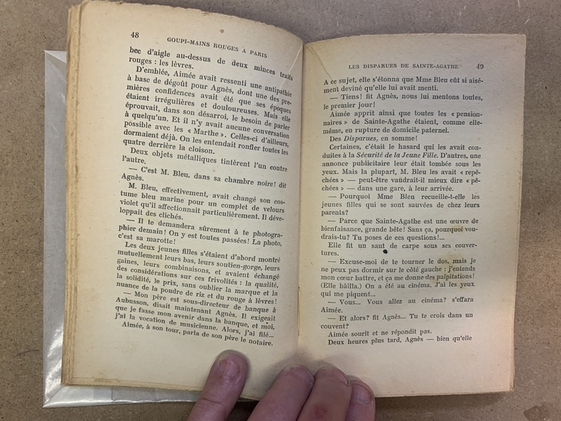 11e volume de la collection "Les Classiques du Roman Policier". Tirage limité à 5150 exemplaires numérotés (N°2522). On trouvera à la fin de l'ouvrage un cahier de 16 pp. intitulé "Les Gaîtés d'Outre-Tombe" illustrées par J. Pruvost, documents trouvés dans les papiers de feu Gérard Bleu par Goupi Mains Rouges.