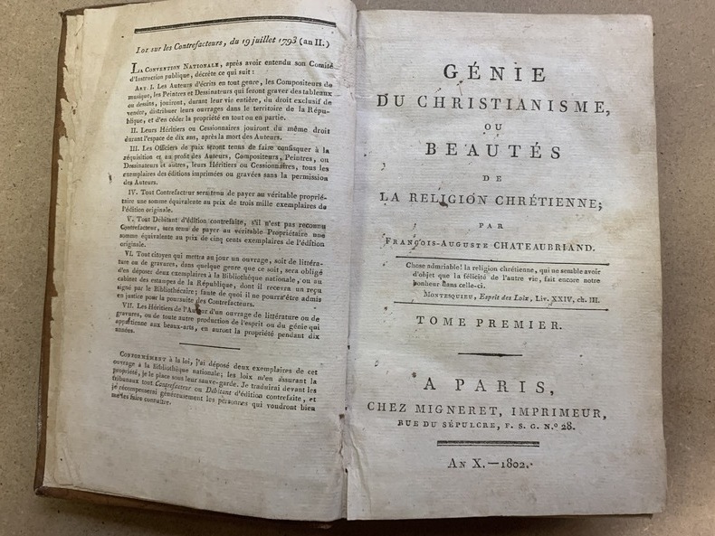 Chateaubriand Génie du Christianisme ou Beautés de La Religion Chrétienne 1819