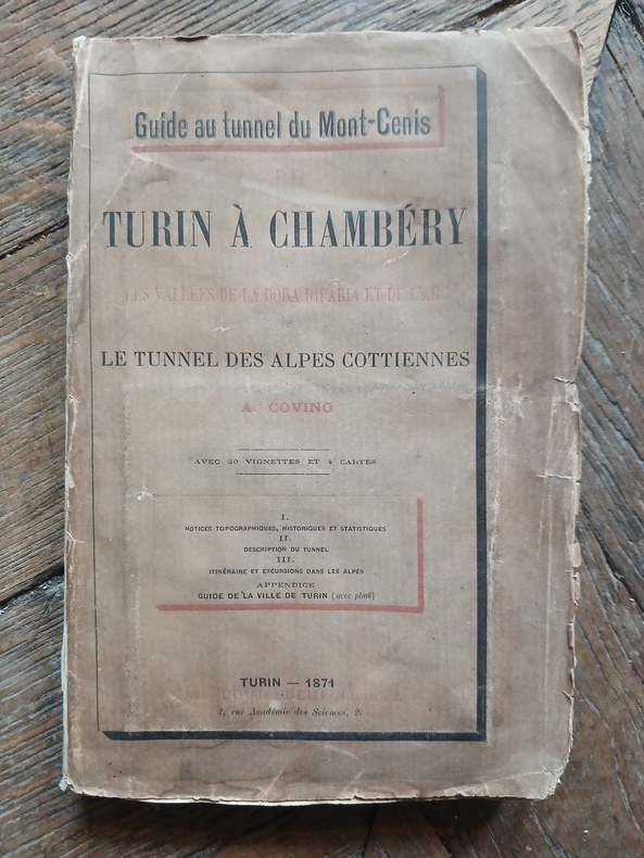 Les vallées de la Dora Riparia et de l'Arc Le tunnel des Alpes cottiennes Avec 30 vignettes et 4 cartes Turin, chez louis Beuf, 1871 1 volume broché (19x12,7cm) de 150+[2] pages Bon état intérieur. Dos abimé et restauré, mouillures sur les plats. Peu commun
