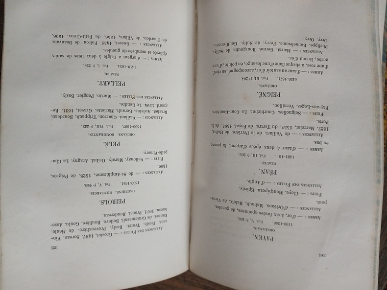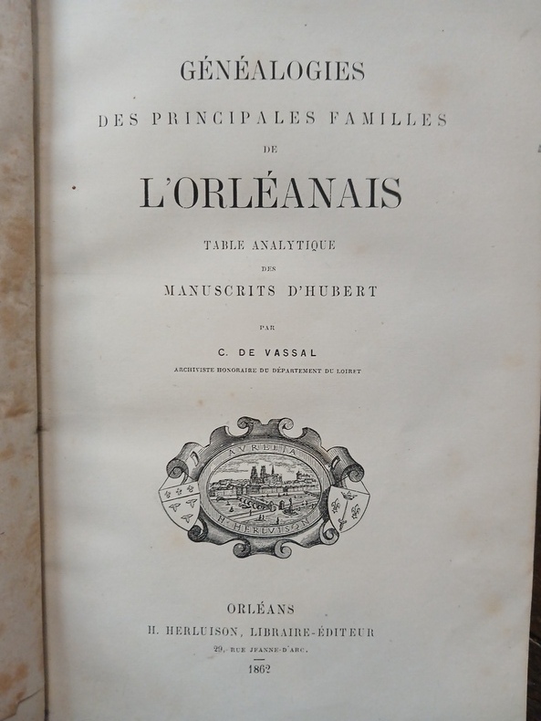 Ce document analytique a été créé dans lintention de « signaler les sources où les familles et les hommes détude pourront puiser des renseignements utiles ». Charles de Vassal de Montviel y expose de brèves caractéristiques des familles dans lordre alphabétique, dont : leur nom de famille, le nom du lieu de résidence, les dates « extrêmes » de la généalogie, les indications du volume et du feuillet où se trouve la généalogie, le blason, les alliances contractées et fiefs possédés.Ces caractéristiques des « principales familles de lOrléanais » sont collectionnées et présentées jusquau 17ème siècle. En fin douvrage, on trouve également un bilan chiffré des généalogies de 1094 familles, réparties entre le 10ème et le 17ème siècle. (Sources Médiathèques Orléans Métropole) Conformément à nos conditions générales de vente :Les frais de port sont affichés à titre indicatif. Il se peut que nous devions vous contacter pour vous informer du coût de laffranchissement supplémentaire en fonction du poids et du nombre de livres, surtout pour les envois internationaux Cependant vu l'augmentation des tarifs postaux à l'internationale, nous pouvons expédier les ouvrages en point relais MONDIAL RELAY pour les pays suivants : Allemagne, Autriche, Belgique, Espagne, Italie, Luxembourg, Pays-Bas, Pologne, et Portugal. Merci de nous indiquer en retour le point relais choisi ainsi que votre numéro de téléphone mobile & adresse Courriel pour assurer le suivi du colis.N'hésitez pas à nous interroger.In accordance with our general terms and conditions of sale:Shipping costs are displayed for informational purposes only. We may need to contact you to inform you of the additional postage costs depending on the weight and number of books, especially for international shipments.However, given the increase in international postal rates, we can ship books via Mondial Relay to the following countries: Germany, Austria, Belgium, Spain, Italy, Luxembourg, Netherlands, Poland, and Portugal. Please provide us with your chosen Mondial Relay point, as well as your mobile phone number and email address to ensure package tracking.Please feel free to contact us with any questions