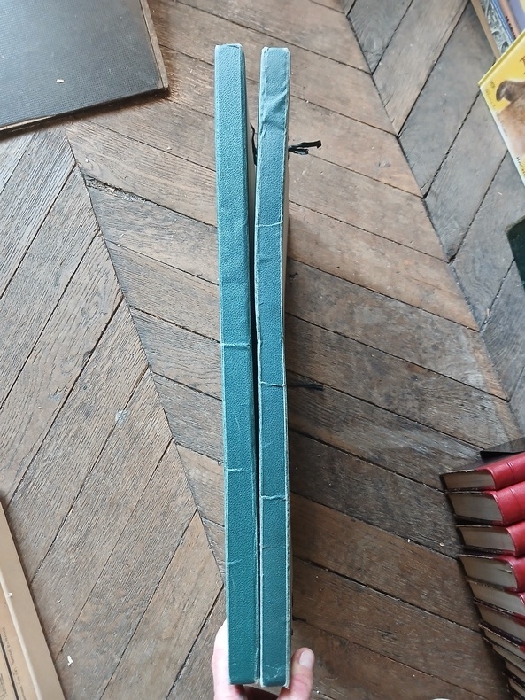 Dourdan (Seine-et-Oise), émile Thézard & fils, éditeurs, sd., coll. « Bibliothèque de l’Enseignement professionnel » 1924 4 volumes : 2 de texte in-4, demi-chagrin bordeaux, dos à nerfs,couvertures conservées, 572- XI- 565 pp. Nombreux croquis dans le texte, 42 vues architecturales hors texte ; 2 portefeuilles in-folio à lacets, demi-percaline bordeaux, cartonnage gris, 100 & 100 planches. Les planches sont généralement effrangées. Une ternie restauration, deux lacunes planches n 31 et 36.