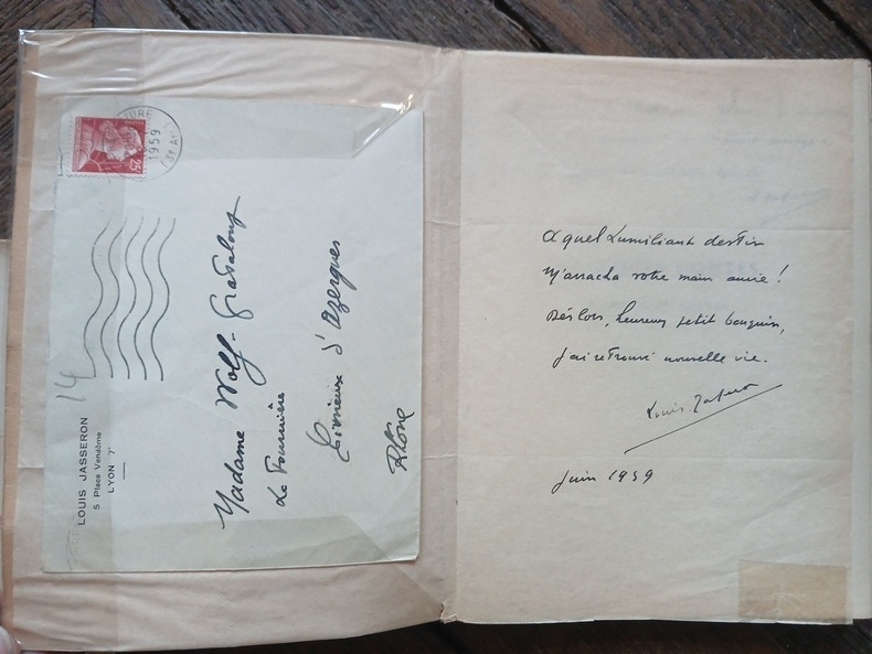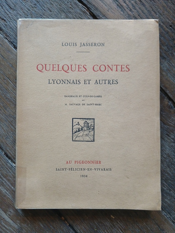 Bandeaux et culs de lampes de Sauvage de Saint Marc. Saint-Félicien en Vivarais, Au Pigeonnier, 1934 Un volume broché (19,2x14,5cm) de 75 pages Envoi de l'auteur, enveloppe et lettre autographe de l'auteur sur la page de garde Bon état Peu commun