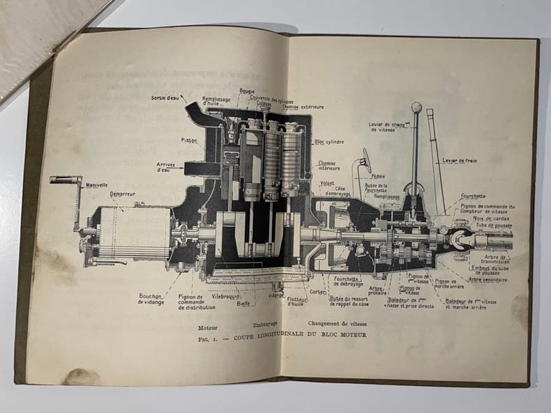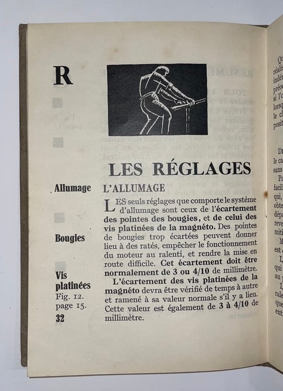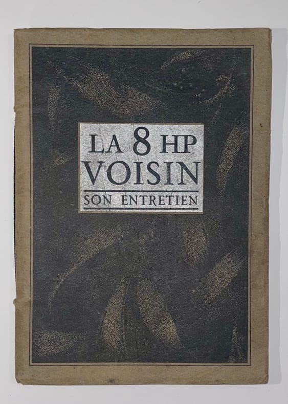 [Paris, Société des Aéroplanes G. Voisin], vers 1922–1924. In-8 (env. 13 18,5 cm), 68 pp., agrafé, couverture en papier fort imprimée en noir et argent.Rare manuel d’entretien publié par les Automobiles Voisin pour le modèle 8 HP, l’un des premiers modèles de la marque équipés du moteur sans soupapes Knight.Belle maquette Art Déco, sobre et élégante, avec sa couverture noire à motifs abstraits argentés.Couverture salie, tachée ; quelques salissures intérieures.