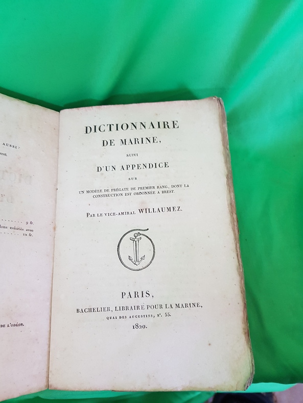 Douarnenez Le Chasse-Marée / Armen 1998 Un fort volume in-4°, 579 pp. + errata. Reliure éditeur toile bleue marine à la Bradel, dos titré, gardes décorées, jaquette illustrée. (premier plat et tranche inférieure légèrement sali.e.s, frottis, marques et petit manque en pourtours de jaquette). Réimpression de l'édition parue en 1825. Un frontispice et trois planches en couleurs; sept planches en noir dépliantes.