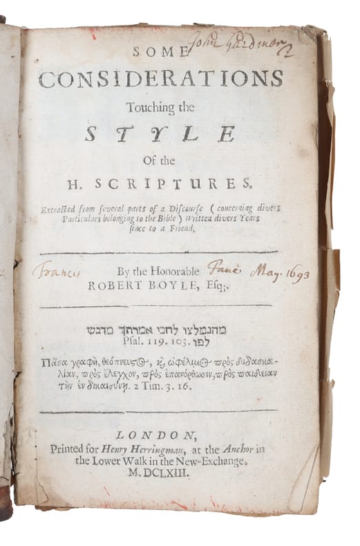 Second edition. The first published 1661. - Fulton No. 42: ""The Style of the Scriptures, the first of his devotional works, is a remarkable forerunner of modern higher criticism which is said to have begin nearly a century later with Astruc (1773).""