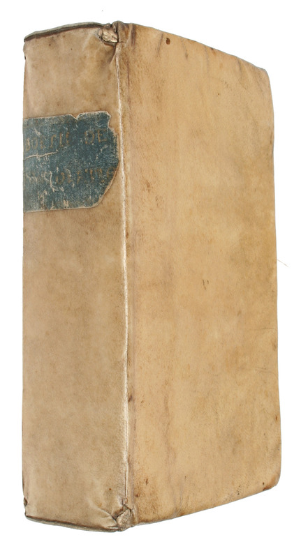 Antwerp, Ex Officina Plantiniana, Apud Ioannem Moretum, 1607 & Hannover, apud Claudum Marnium, & heredes Ioan. Aubrii, 1607. 8vo. Bound together in one cont full vellum binding w. blue title-label to spine. First title-page w. cont. owner's name ""G. Clavez"" and with inscrition from the Monastary of Saint Roch in Toulouse. In all a nice and attractive book.First work: very minor loss to lower corner of title-page. Numerous woodcut initials and woodcut printer's devise to title-page and verso of last, otherwise blank, leaf. (16), 394 pp. Second work: First few leaves evenly browned, and some general brownspotting. A few leaves lacking very small parts of lower marging, far from effecting text of leaf-signatures. woodcut printer's device to title-page, woodcut initial. (24), 287, (1) pp.