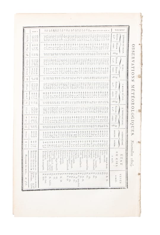 (Paris, Crochard, 1824). Without wrappers. In: ""Annales de Chimie et de Physique, Par MM. Gay-Lussac et Arago."", tome 27, Cahier 3. Pp. 225-336. (Entire issue offered). Fourier's paper: pp. 236-281.